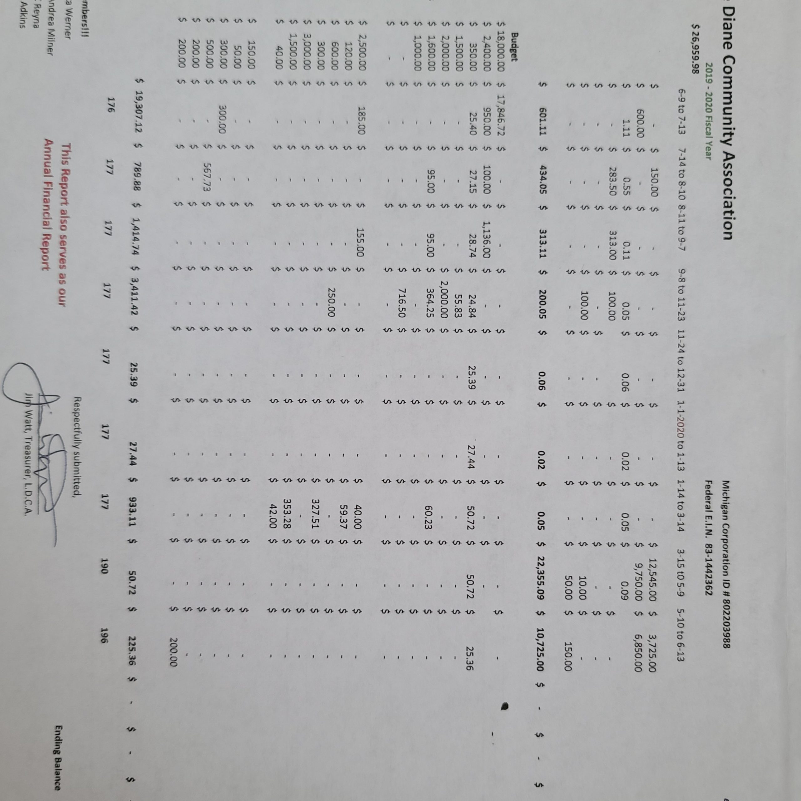 Doug Wittler is in attendance to promote the paving of East Diane Drive and its adjoining roads. Property owners with frontage on any of the proposed roads will pay per linear foot for the paving and improvements. Cellars Road is also included in the petition with the township and county being responsible for the cost. The goal is to have the project completed by July 4, 2021. The purpose of Mr. Wittler’s presentation today is to ask for support of the project from the board. Jim Watt made a motion that Lake Diane Community Association support the paving and improvements of East Diane Drive and adjoining roads. Scott Hercula seconded the motion. A vote was taken, and the motion passed unanimously.