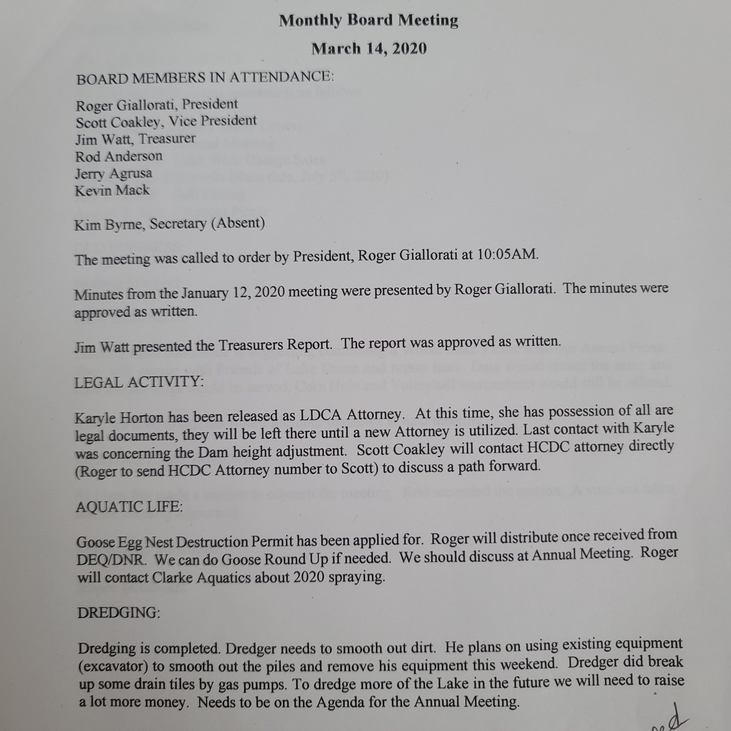 LDCA Monthly Board Meeting March 14, 2020