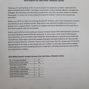 MI Hybrid Watermilfoil Project Lake Diane 2019