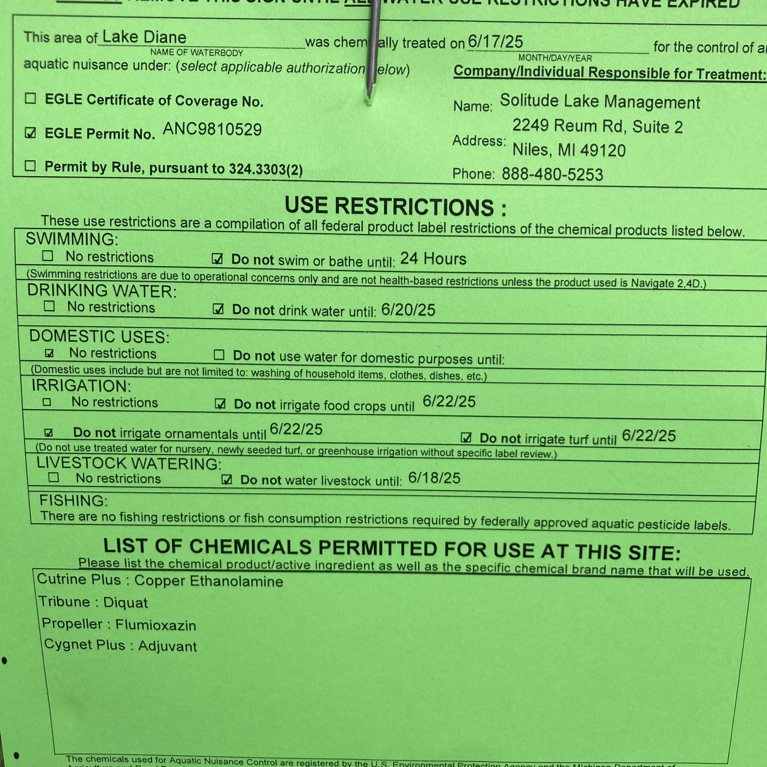 The LDCA is happy to announce that the permit and logistics for approval for weed treatment has been granted.